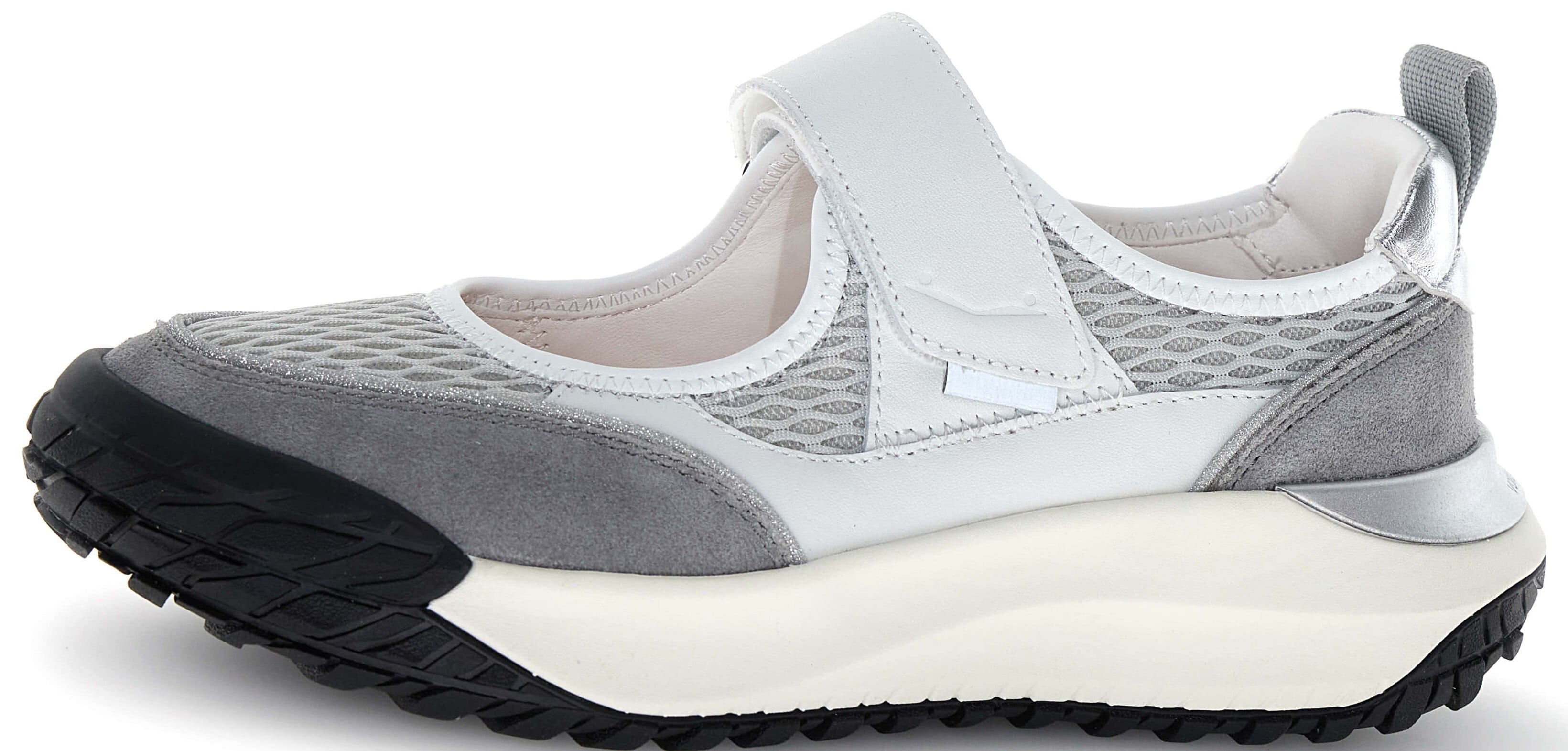 VOILE BLANCHEの中で、素材をイタリアン産に拘り、テクニックスニーカーに使用するパーツや素材、エッセンスデザインに活かしたのが特徴的なCLUBシリーズ。こちらのNEWモデルもCLUBシリーズの仲間。 トレンド要素の高い、メリージェーン型のコレクションで、 光沢感あるパーツ×メッシュ×テクニックソールを掛け合わしたハイブリッドコレクション。程よい、クッション性あるソールが履き心地も良く、流動的な丸みのあるソールの形状もデザインポイント。